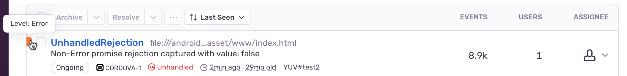 - Users: Issues are sorted by number of users affected.